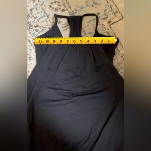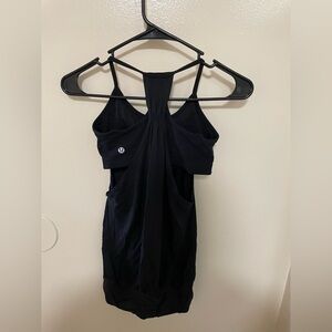 Lululemon women’s no limit tank top. Built in sports bra with no pads. Black in color. Great condition, like new! No size dot or tag. See measurements. Measures as size 2