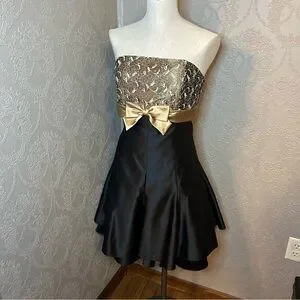Vintage Gunne Sax Jessica McClintock prom dress 11 cocktail dress black gold