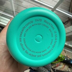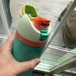 16 oz. teal water bottle, accented with peach and cream. Never used, in excellent condition. Fits in car cupholders.