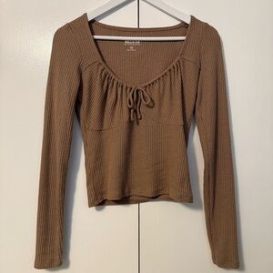 Stay cozy and stylish with this elegant cable knit sweater. Has trendy front tie for a cute bow.