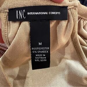NWT INC International Concepts Gold Tiered Ruffle Blouse halter-neck top Sz M.