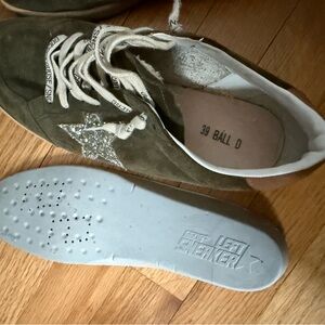 Open to offers: no less than $360 FIRM. Authentic GGDB sneakers! Nearly perfect condition! Stylish olive green sneakers with tan accents. Features signature star design. Comfortable and trendy.