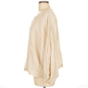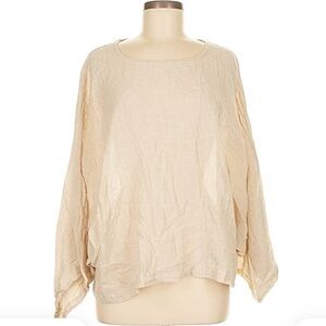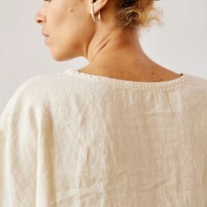 Minimalist, oversized linen top by Black Crane. Known as the “Kite Top” or “Easy Top,” this style features a relaxed, boxy silhouette with wide sleeves and raw-edge hem. Effortless and breathable, perfect for layering or warm-weather wear.