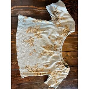 Keywords: Sadie & Sage, women's blouse, multicolor, floral pattern, casual wear, spring fashion, short sleeve, round neck, breathable, textured, rayon, pre-owned, regular fit, basic style, dry clean only.
