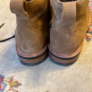 Rhodes Footwear “Portland” suede boots. The color is “Mojave Suede”, a light brown. Vibram soles. Purchased from Huckberry and husband wore them literally one time—basically new condition.
