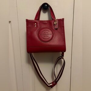 Madewell Sydney Crossbody /tote salmon Leather Bag Good condition minimal signs of wear/ scuffing. Magnetic closure. Inside clean condition. Removable Crossbody adjustable strap. Two handles. Bottom corners of purse good condition minimal wear Pink mauve color. H 8 inches W 8 1/ half inches 4 1/2 inches Strap drop approximately 22 inches but can be made longer or shorter with adjustable strap. Handle drop 4 inches