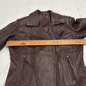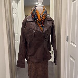 Lambskin woman Brown Leather Moto Jacket size M