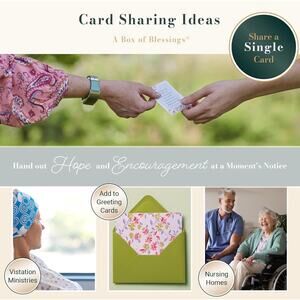 The Scripture truths on the 50 double-sided cards will add to your trove of blessings as you work your way through the box. The cards alternate between two pink designs on the front and two blue designs on the back. The front of each card features an encouraging and inspirational saying, while the back features select Scripture verses.