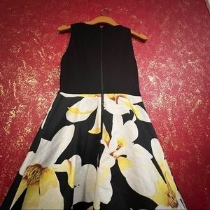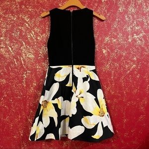 ALICE + OLIVIA KOURTNEY Sleeveless Box Pleated Combo Lined Dress Black /Floral 2