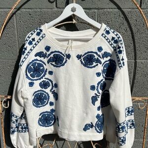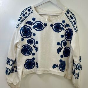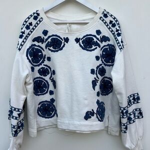 Anthropologie cream colored sweatshirt, size small with navy blue appliqué