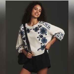 This awesome Anthropologie sweatshirt is beautifully embellished with crewel work appliqué