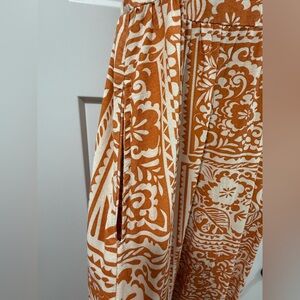 Chic floral maxi dress by Japna. Features a stylish brown and cream pattern with pockets. Perfect for versatile styling.