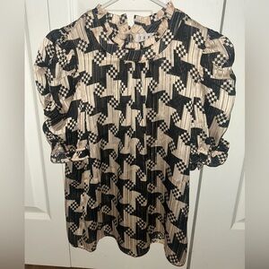 Size 0 wide leg black jeans with rhinestones. High quality, thick material, new with tags. Runs true to size. I am 5 foot 4 and they are just long enough to wear with sneakers or heels.