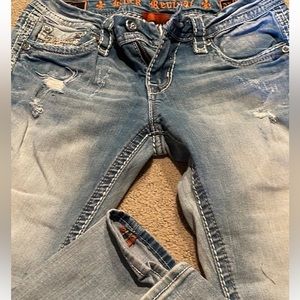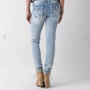 Stylish skinny jeans by Rock Revival. Light blue wash. Perfect for casual wear.