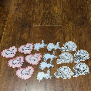 details: 15 pcs pcs lions iron patches. includes helmet and logo designs. perfect for fans and collectors.