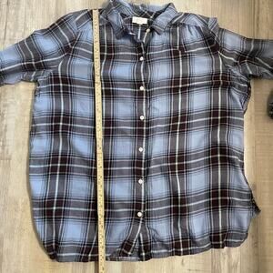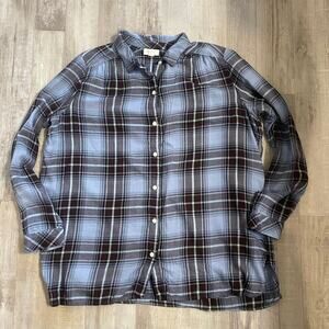 J. Jill Rayon/Cotton Tunic Shirt Large Women Plaid Long Sleeve Button Up Casual