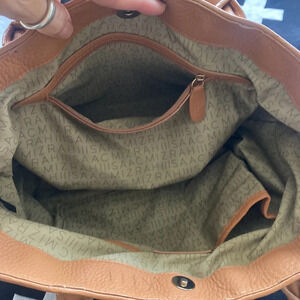 Beautiful tan pebble leather bag Coral and tan matching Tassle Great condition with very minor wear on the straps See photos