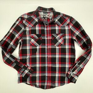Aeropostale Mens Plaid Shirt Western Pearl Snap L/G Large Red Black