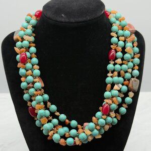 Multi Strand Stabilized Turquoise Gemstone Necklace Sterling Silver Clasp Choker
