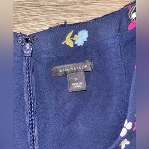 Chic navy dress featuring colorful floral designs. Ideal for versatile styling.