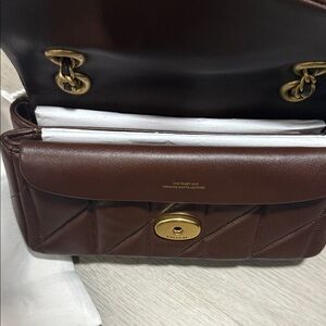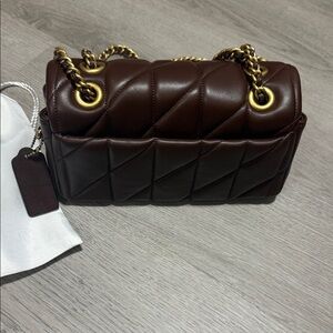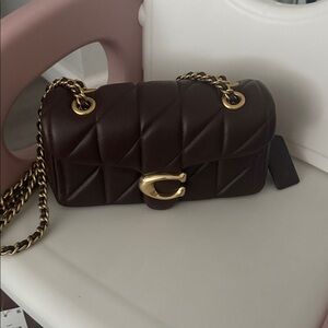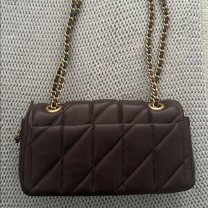 Coach Dark Brown Quilted Shoulder Bag with Gold Chain