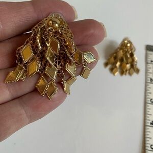 Vintage dangly gold chandelier shiny gold clip earrings.