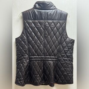 Stylish quilted vest. Brown color. Sleeveless design. Front zipper and Snap closure. Perfect for layering.