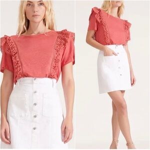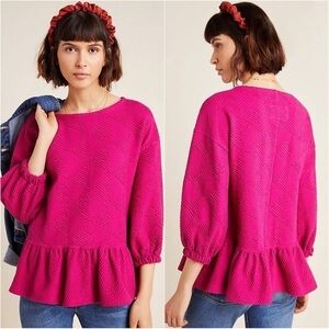 “Made in our Soft Rib Knit, this statement half-zip pullover draws inspiration from the Carmen with a boxy silhouette. Balloon sleeves and a directional rib pattern elevate the design.