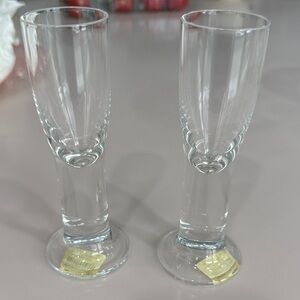 Elegant crystal shakers with intricate design. Silver tops add a touch of sophistication.