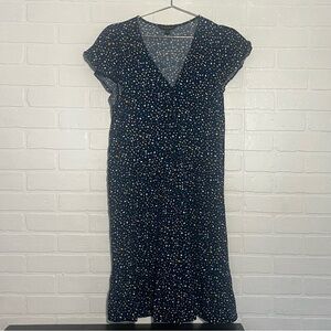 THML Womens Sweater Tan Navy Blie Orange Mixed Print Balloon Sleeve Large