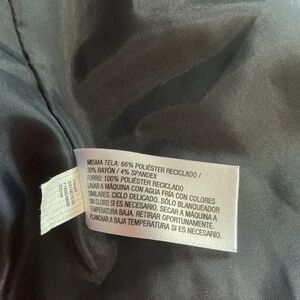 New Wild Fable Women’s Blazer Size XXL, Medium or XXS, Navy Blue, Pinstriped, long sleeve, single breasted, two front buttons, notched, two front flap pockets, buttons on sleeves, shoulder pads. 66% polyester, 30% rayon, 4% spandex, lining 100% polyester.