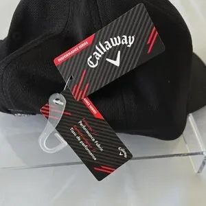 Classic black cap with embroidered Callaway logo and stretch fitted design NWT. Ideal for golf enthusiasts size S/M. 100% Polyester