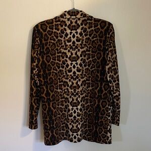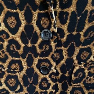 Stylish leopard print blazer. Adds a bold statement to your wardrobe. Perfect for any occasion. Unlined, flap pockets. Extra button.