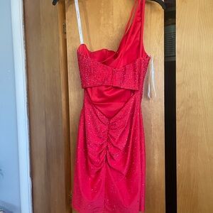 Sherri Hill Red One-Shoulder Dress with Sparkling Accents