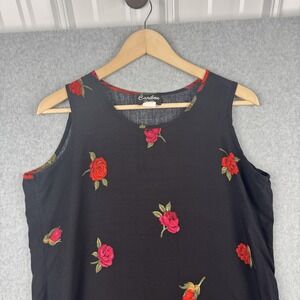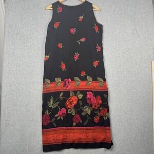 Vintage Caribou Dress Womens Large Black Red Floral Sleeveless Maxi Made in USA 90s