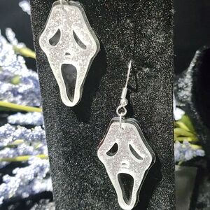 Add a touch of mystery to your look with these silver ghost face earrings. Perfect for Halloween... or all year!