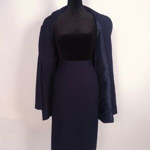 Iconic navy 80s vintage Morgan Miller suit set with blazer, trousers and skirt! All three piece could be worn separately because they’re each amazing. Size 18 (vintage sizing so check the measurements). Minor piling throughout but otherwise in excellent condition. Could probably use a dry clean.