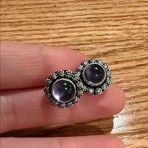 Elegant Silver Purple/Black Round Stud Earrings .925 stamped