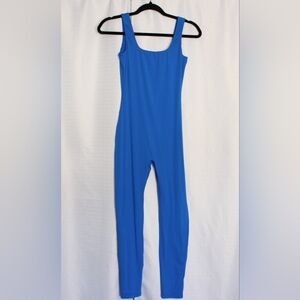 Preowned, worn twice. No major flaws—just a couple light stains (barely noticeable, see pics). Adjustable drawstring waist, tank top upper, jogger-style legs, 2 side pockets + cargo pockets.