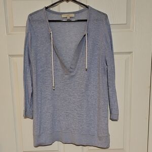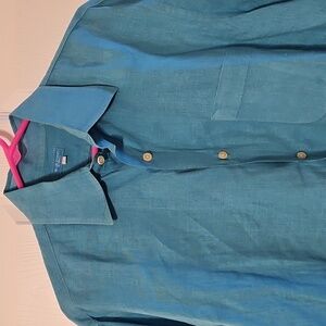 jacket is open front, shoulder pads, foldover sleeves
