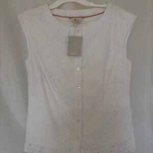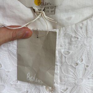 BODEN white floral eyelet cap sleeve blouse 6P with lining NWT