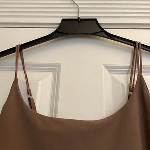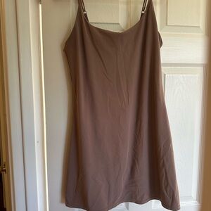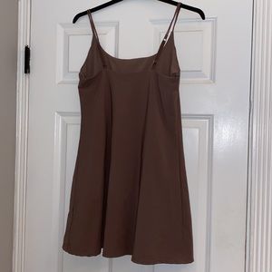 Chic sporty mini dress with a sleek design. IT HAS SHORTS & A POCKET. Perfect for casual outings. Perfect transition from summer to fall dress. Lovely brown for a neutral girly! Washed and tried on but never wore.