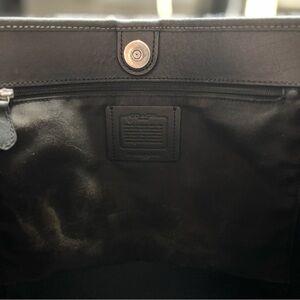 Stylish Coach tote with a black base and white floral pattern. Ideal for everyday elegance.