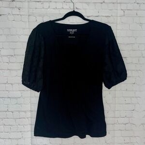 Torrid Black Super Soft Rib Knit Surplice Top Floral Puff Sleeve Blouse