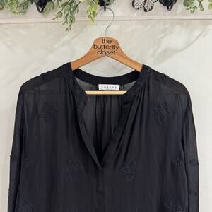 velvet by graham spencer Black Embroidered Blouse Boho Chiffon Semi Sheer UU800