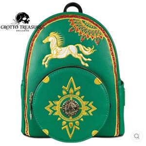 This backpack is an officially licensed Disney product measuring approximately 9" W x 10.5" H x 8" D.