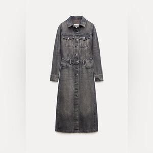 ZARA ZW Collection Denim Cotton Shirt Midi Dress Size Small Gray Wash $139 NWT