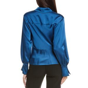 Color/pattern: marine Approximately 22in from shoulder to hem Model is 5'9 and is wearing a size 4. Measurements may vary slightly by size. Design details: spread collar and front wrap detail Side seam zipper closure 89% acetate, 11% polyester Dry clean only Imported