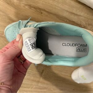 Barely worn! These Adidas sneakers have a comfy sole and beautiful color.