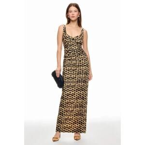 The Simkhai Aldina Maxi Dress is a standout piece with its sleek silhouette and elegant design. Perfect for cocktail parties or evening events, it pairs effortlessly with strappy heels and minimal accessories for a sophisticated look.